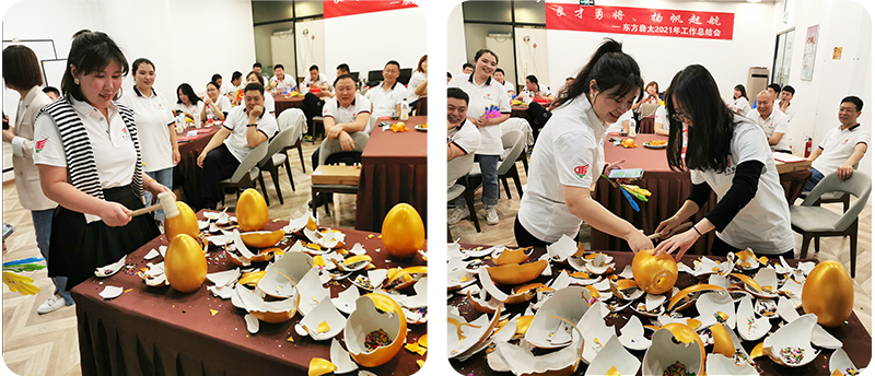 杨总对2019年-2021年三年业绩汇总进行分析总结,并对2022年进行了规划。她说:“没有方向的人生叫流浪,有方向的人生叫远航;没有目标的人生叫折腾,有目标的人生叫奔腾!目标制定非常重要,首先从调整组织结构和方向开始,一个有序的组织才能有效率,一个有效率的组织才能有发展,一个有发展的组织才能有创新。通过这句话她为大家诠释了“家文化”。“家”有着特殊的意义,从家庭到家族、到国家、到家天下...以“家”为纽带,其基本元素主要包括:“厚德”、“博爱”、“诚信”、“感恩”,是“家文化”的主要元素。 为了“家”的更好传承,所以她根据前三年的业绩制定了2022年新的销售目标并设立额外奖金制,来激励东方森太每一位“家人”。