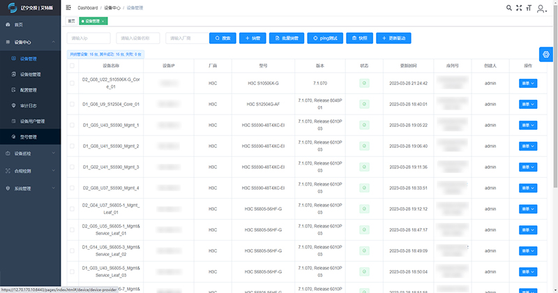 主要用于集团数据中心网络设备的统一管理,实现设备批量纳管、提高安全防护水平,设备状态采集及集中展示、自动化巡检、自动化合规监测,设备策略统一管控,提高运维团队的工作效率,减小运维工作负担。