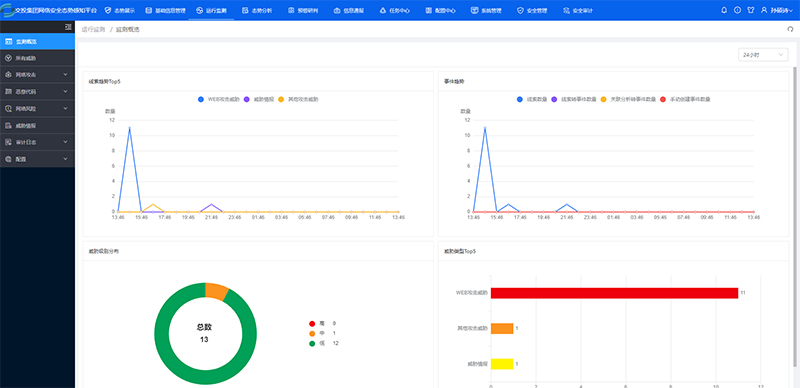 主要用于统一采集集团数据中心网络安全事件的安全监测数据,采用大数据及机器学习技术对安全监测数据进行归并、聚合、关联、分析、整合,实现网络安全态势整体呈现、网络安全事件统一处置、安全风险统一管理,为企业安全运营提供平台化解决方案,实现安全管理赋能。