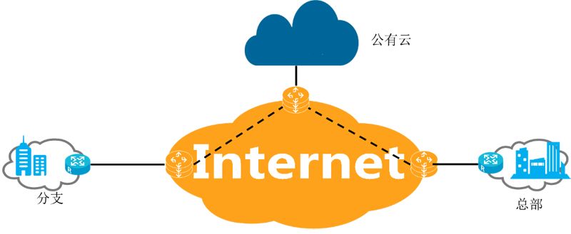 移动办公,特别是BYOD的广泛部署,使得企业网面临更严重的安全威胁。SD-WAN集中控制系统,可以将安全策略推送到各分支机构,同时,可部署多种安全防护功能,并能够同SDP(Software Defined Perimeter软件定义边界)技术结合。针对用户互联网接入场景,运营商/第三方服务商可以提供IP Sec以及SSL等安全接入服务。