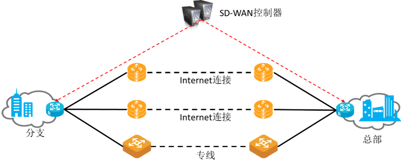 在传统的Hybrid-WAN解决方案中,引入集中控制器。如图5所示: