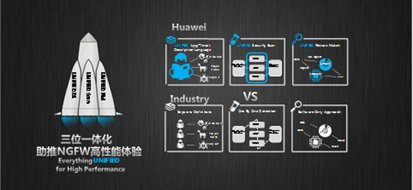 - 不同于UTM对各个安全功能串行处理,USG6000在完成统一解析后,各安全业务检查是并行的,最后做统一处理。每个步骤一次性做好,确保多安全业务开启情况下,对整体性能影响很小;